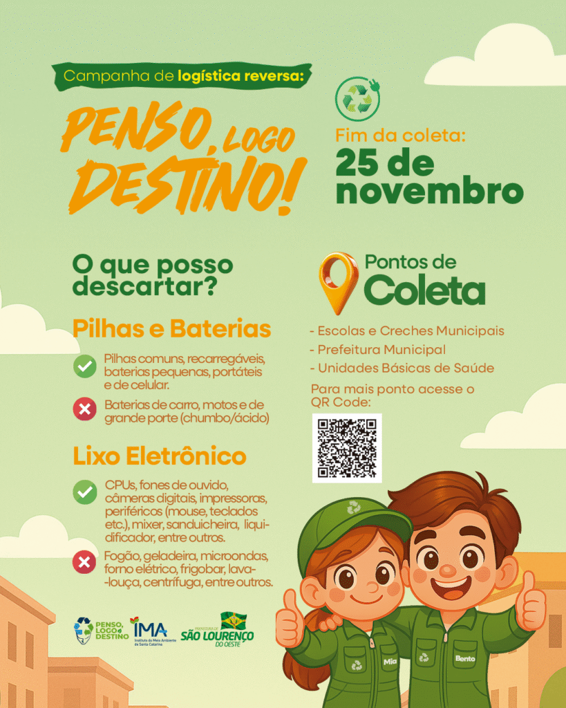 12 de novembro de 2025Departamento de Meio Ambiente Lança Nova Edição da Campanha “Penso Logo Destino”O Departamento de Meio Ambiente de São Lourenço do Oeste iniciou, no último dia 27, mais uma edição da campanha Penso Logo Destino (PLD), uma ação […]