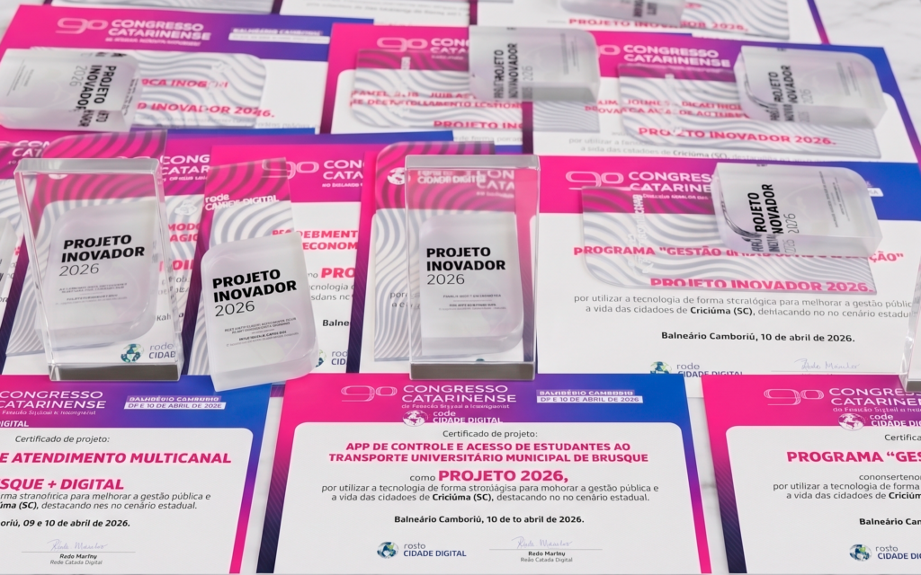 16 de abril de 2026Prefeitura conquista prêmio de Projeto Inovador com futuro Centro de Inclusão DigitalReconhecimento ocorreu no 9.º Congresso Catarinense de Cidades Digitais e Inteligentes e destaca o compromisso do município com a tecnologia aliada à cidadania. A Prefeitura Municipal […]