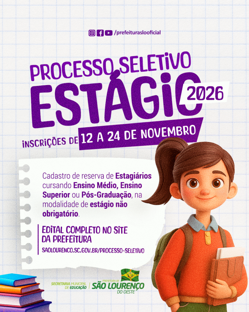 A Secretaria de Educação de São Lourenço do Oeste abriu inscrições para o processo seletivo destinado à contratação de estagiários para a Rede Municipal de Ensino, […]