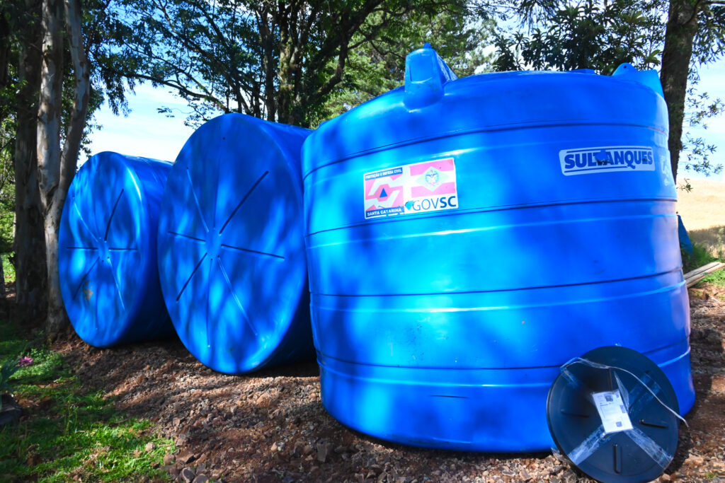 O distrito de São Roque, um dos mais afetados pelas estiagens recorrentes em São Lourenço do Oeste, recebeu um importante reforço para enfrentar o problema da escassez de água. Na manhã desta sexta-feira (14), a Defesa Civil estadual entregou três novos reservatórios com capacidade de 20 mil litros cada que irão substituir os antigos. Eles serão instalados em uma base de concreto na propriedade da família Bortoli, que está sob a administração da Associação de Água do Distrito de São Roque.