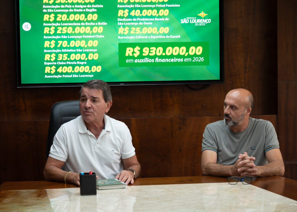 A Prefeitura de São Lourenço do Oeste realizou, na tarde desta terça-feira, 31 de março de 2026, no Gabinete Municipal, a assinatura dos Termos de Parceria com diversas entidades do município, oficializando o repasse de recursos públicos para o desenvolvimento de projetos ao longo do ano.