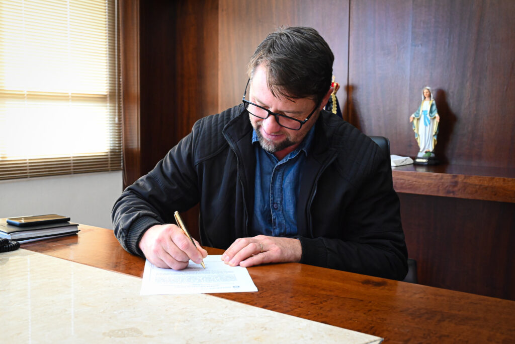 O governo municipal de São Lourenço do Oeste assinou a ordem de serviço para a pavimentação asfáltica da rodovia municipal que liga à comunidade de Linha Santo Antônio. A obra será executada em Concreto Betuminoso Usinado a Quente (CBUQ) e representa um importante avanço na infraestrutura do interior do município.